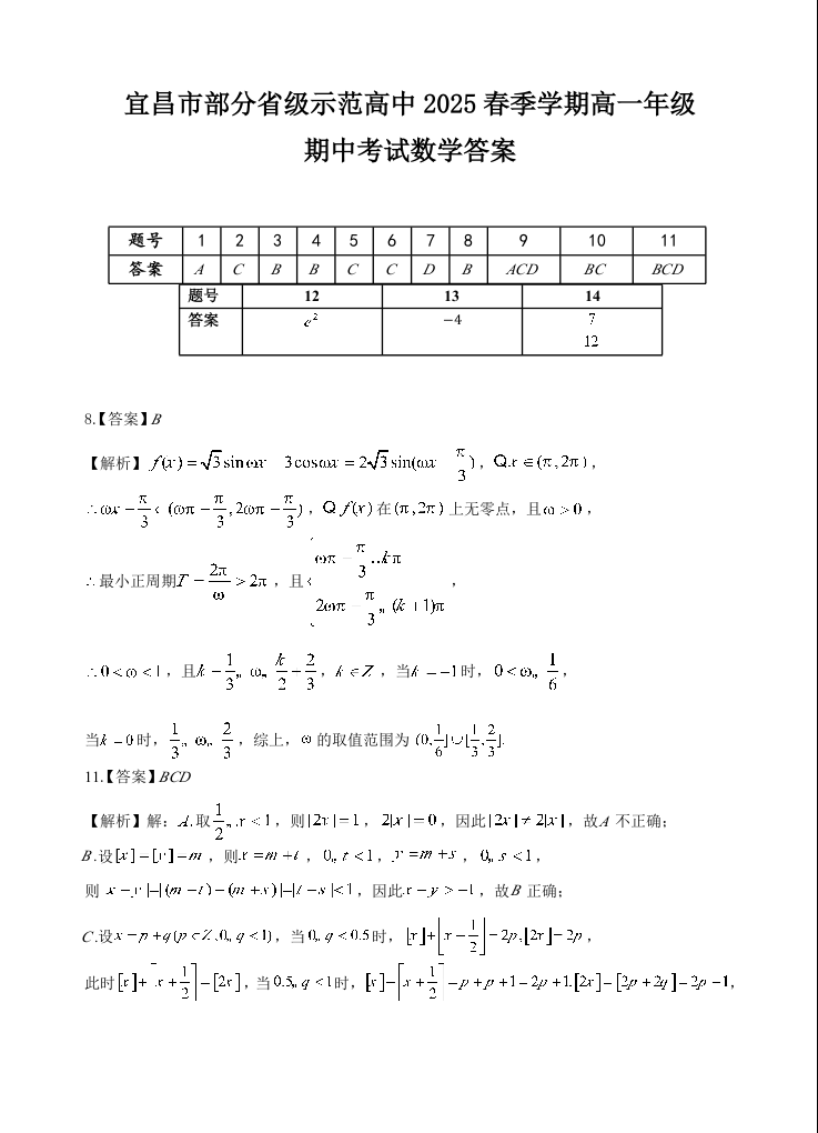 湖北省宜昌市部分省级示范高中2024-2025学年下学期4月高一期中联考数学答案