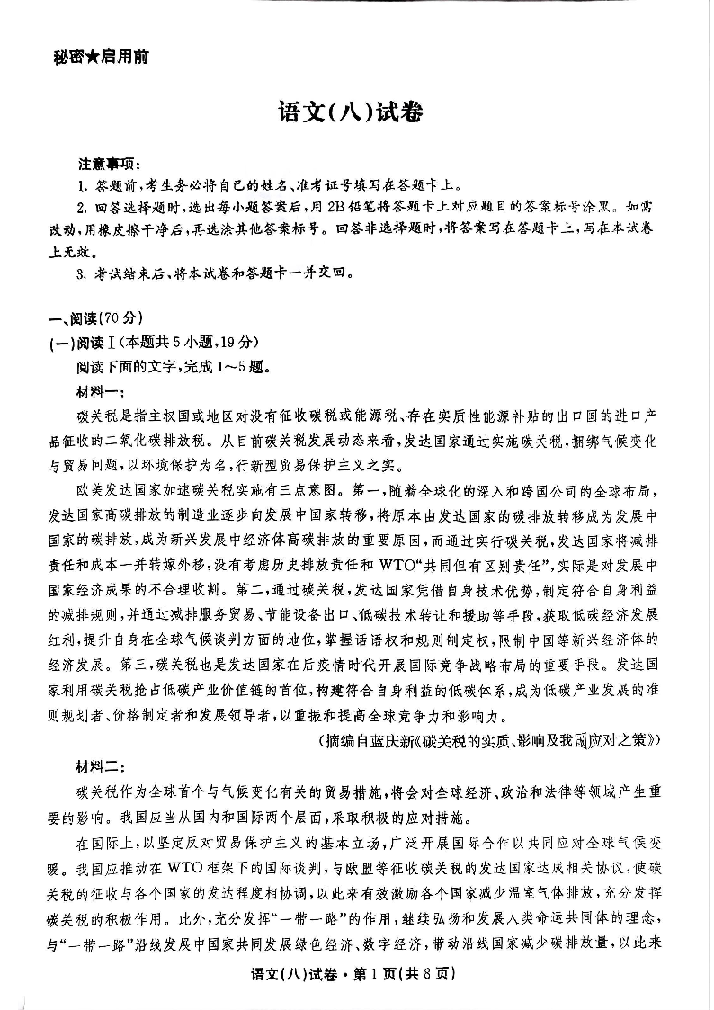 云南省名校联盟2024-2025学年下学期高三月考(八)语文