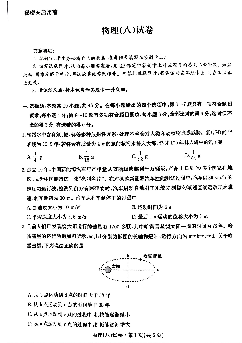 云南省名校联盟2024-2025学年下学期高三月考(八)物理