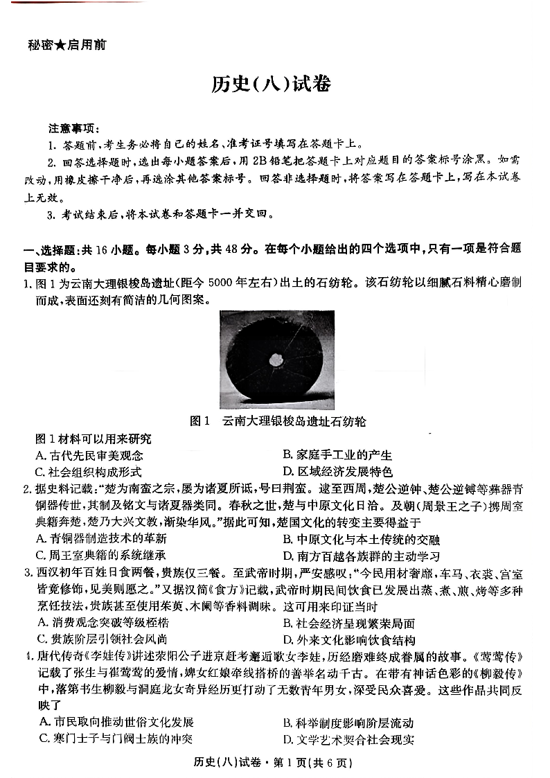 云南省名校联盟2024-2025学年下学期高三月考(八)历史
