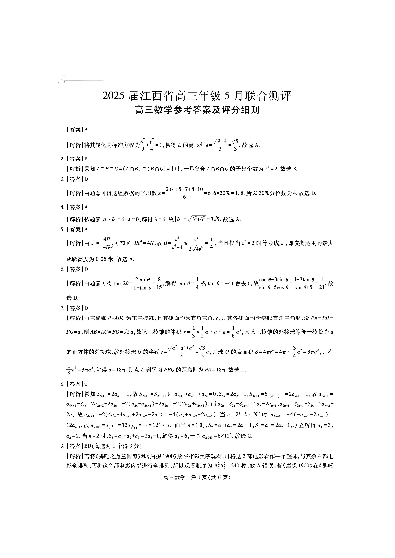 江西省稳派上进联考2024-2025学年下学期5月高三联合测评数学答案