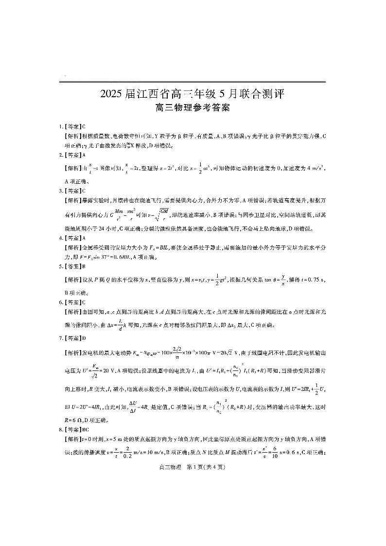 江西省稳派上进联考2024-2025学年下学期5月高三联合测评物理答案