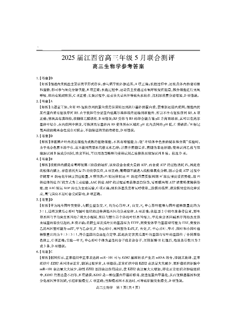 江西省稳派上进联考2024-2025学年下学期5月高三联合测评生物答案