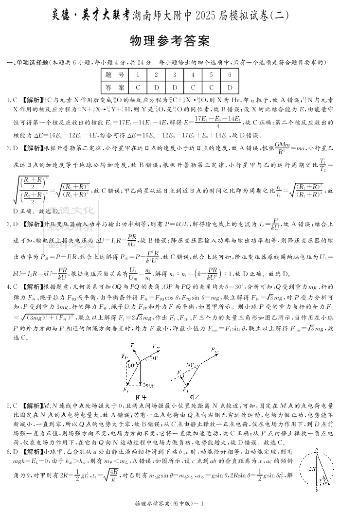 湖南省师大附中2024-2025学年下学期高三模拟考试(二)物理答案