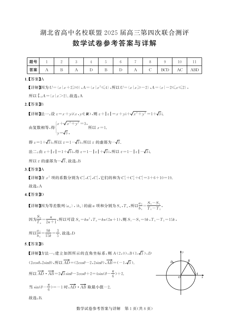 湖北省圆创高中名校联盟2024-2025学年高三第四次联合测评数学答案