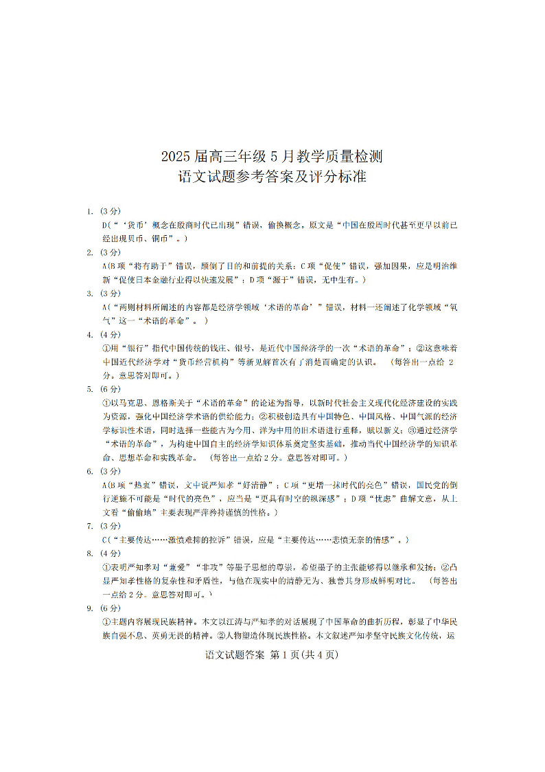 合肥市2024-2025学年下学期5月高三三模教学质量检测语文答案