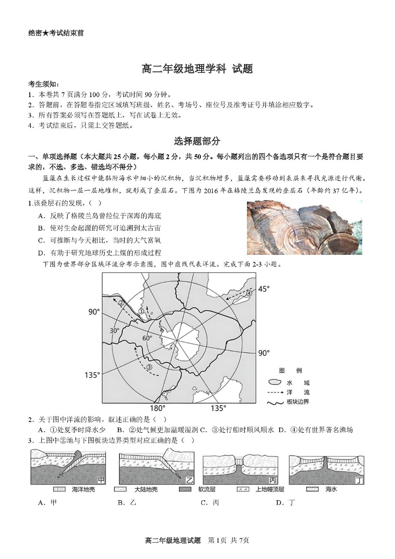 浙江省宁波市六校联盟2024-2025学年下学期高二期中联考地理+答案
