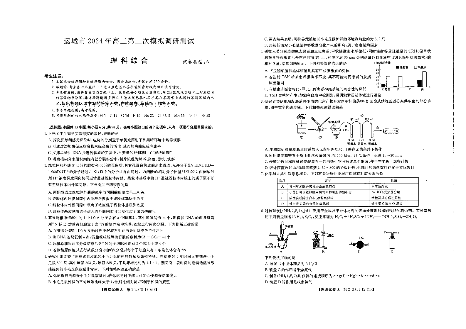 山西省运城市2024届高三第二次模拟调研测试(运城二模)理综