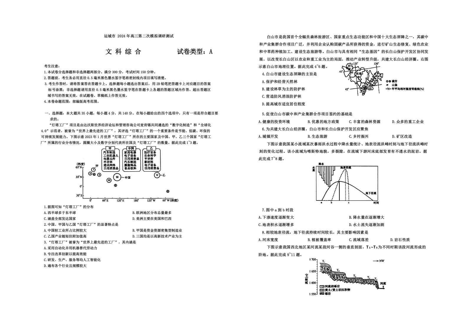 山西省运城市2024届高三第二次模拟调研测试(运城二模)文综