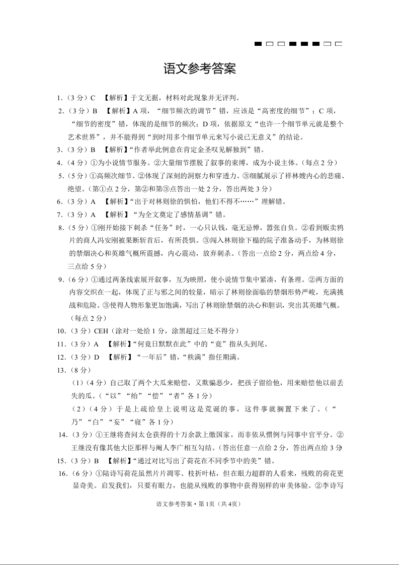 云南师范大学附属中学2024届高三下学期高考适应性月考卷(九)语文答案