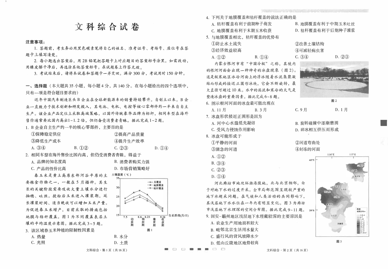 云南师范大学附属中学2024届高三下学期高考适应性月考卷(九)文综