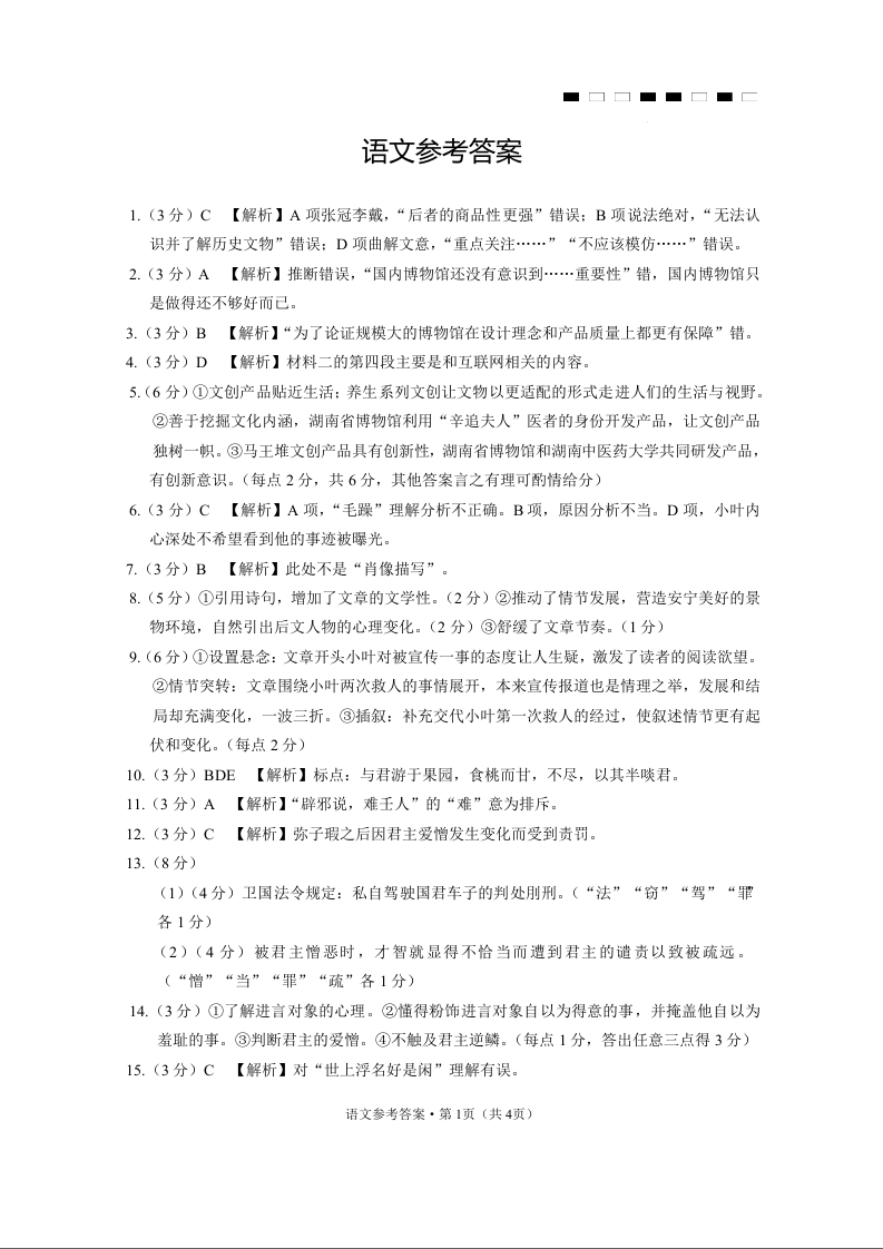 云南师范大学附属中学2024届高考适应性月考卷(十)语文答案