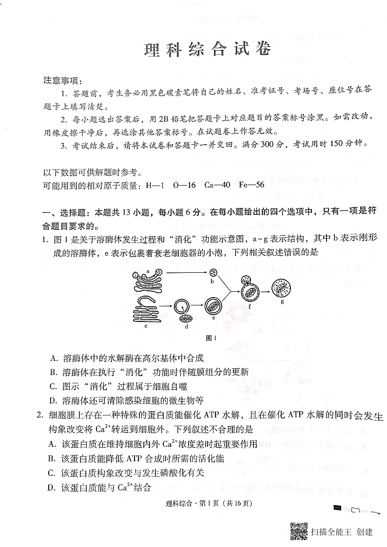 云南师范大学附属中学2024届高考适应性月考卷(十)理科综合