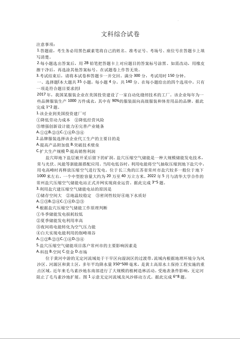 云南师范大学附属中学2024届高考适应性月考卷(十)文综+答案