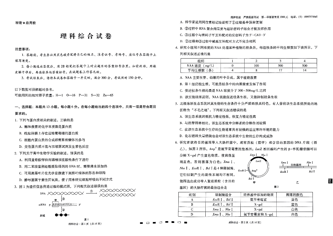 云南省昆明市云南师大附中2024届高考适应性月考卷(一)理综