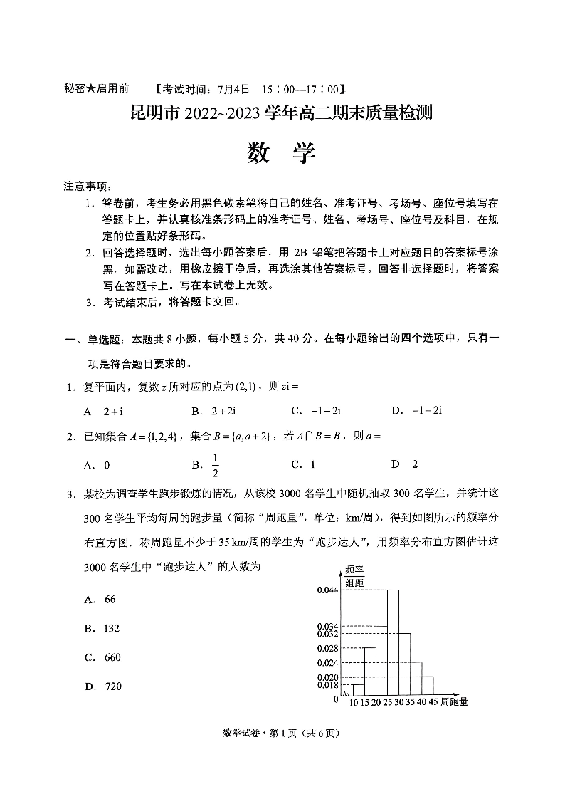 云南省昆明市2024届下学期期末考试数学