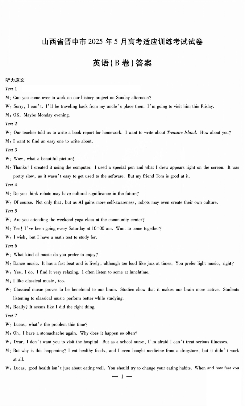山西省晋中市2025年5月高考适应训练考试(三模)英语答案