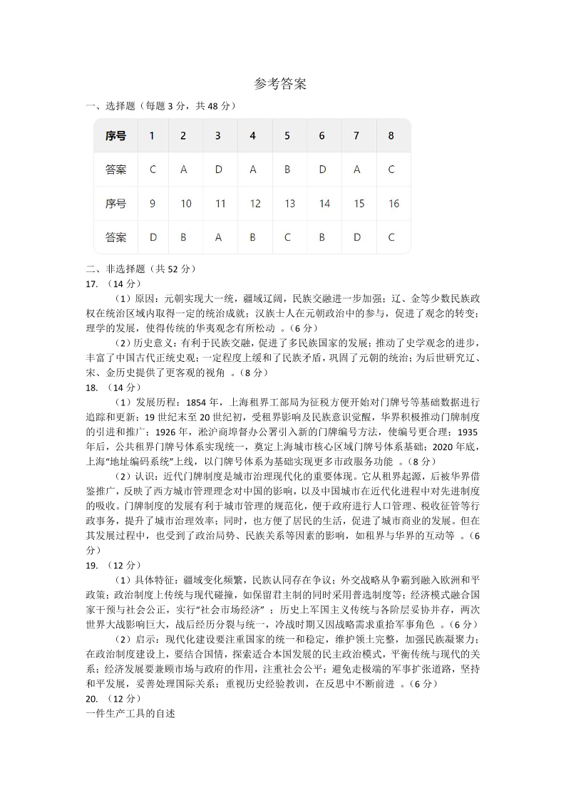 山西省晋中市2025年5月高考适应训练考试(三模)历史答案