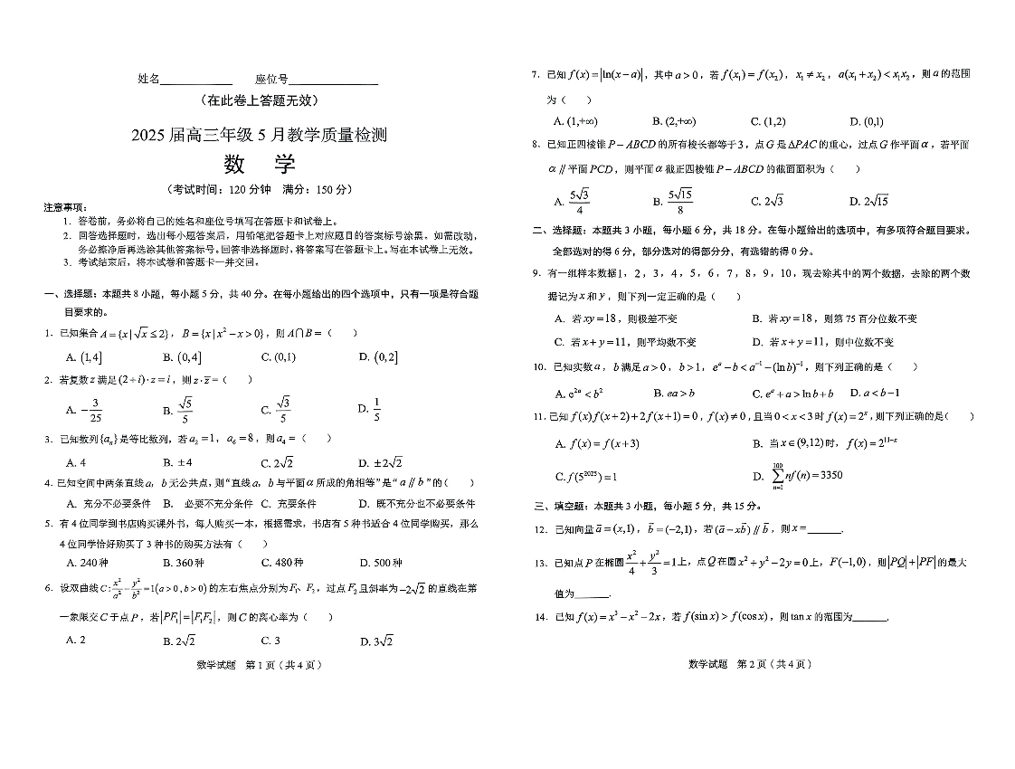 安徽省合肥市示范中学2025届高三5月教学质量检测数学