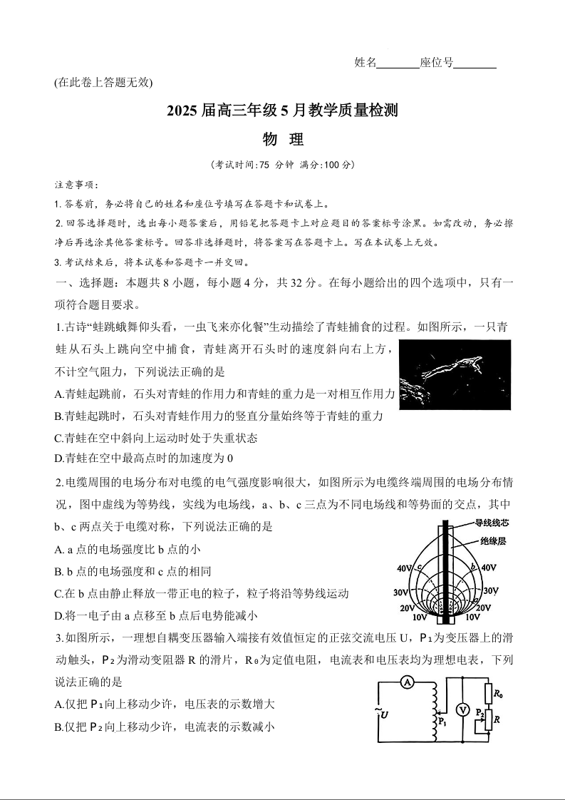 安徽省合肥市示范中学2025届高三5月教学质量检测物理