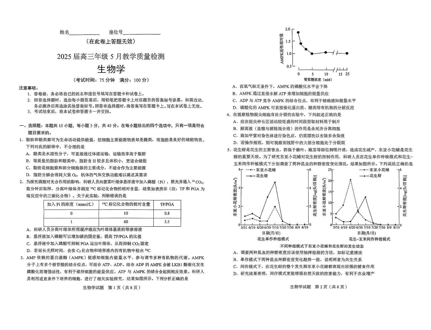 安徽省合肥市示范中学2025届高三5月教学质量检测生物