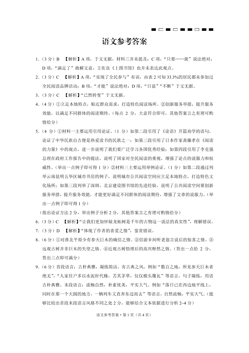 云南省昆明市2024届云南师范大学附属中学高考适应性月考(二)语文答案