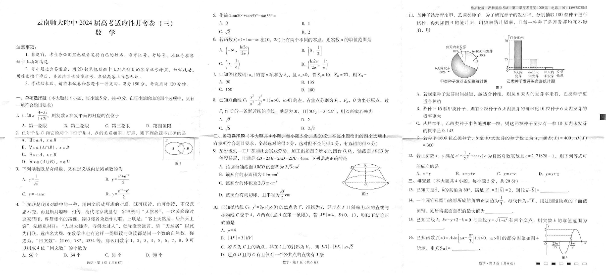 云南师范大学附属中学2024届高考适应性月考卷(三)数学