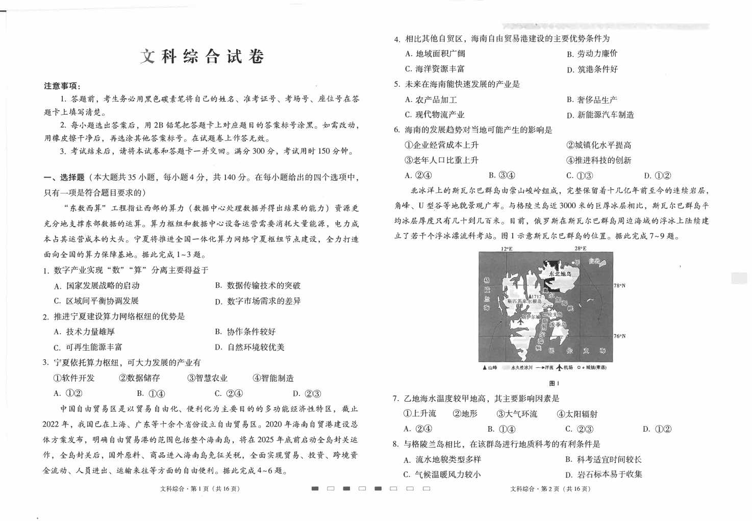 云南师范大学附属中学2024届高考适应性月考卷(三)文综
