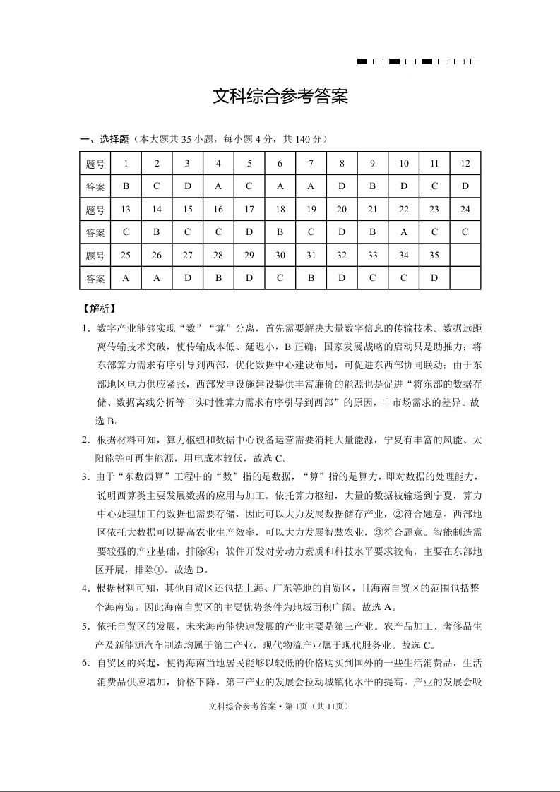 云南师范大学附属中学2024届高考适应性月考卷(三)文综答案