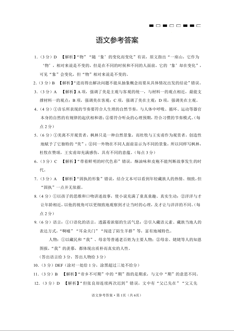 云南省云南师范大学附属中学2024届高三上学期高考适应性月考卷(四)语文答案