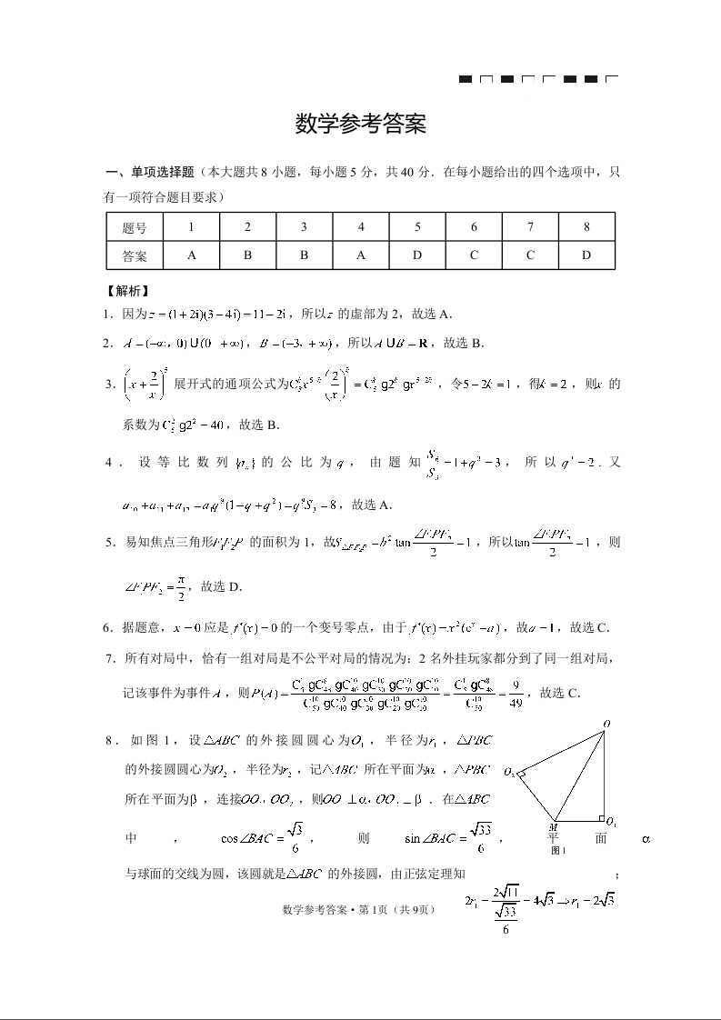 云南省云南师范大学附属中学2024届高三上学期高考适应性月考卷(四)数学答案