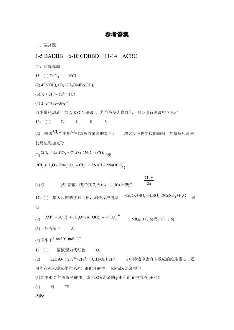 云南省2024届高三上学期质量检测(一)化学答案
