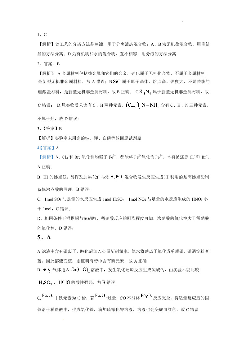 山西省吕梁市 2024届高三上学期阶段性测试(一模)化学答案