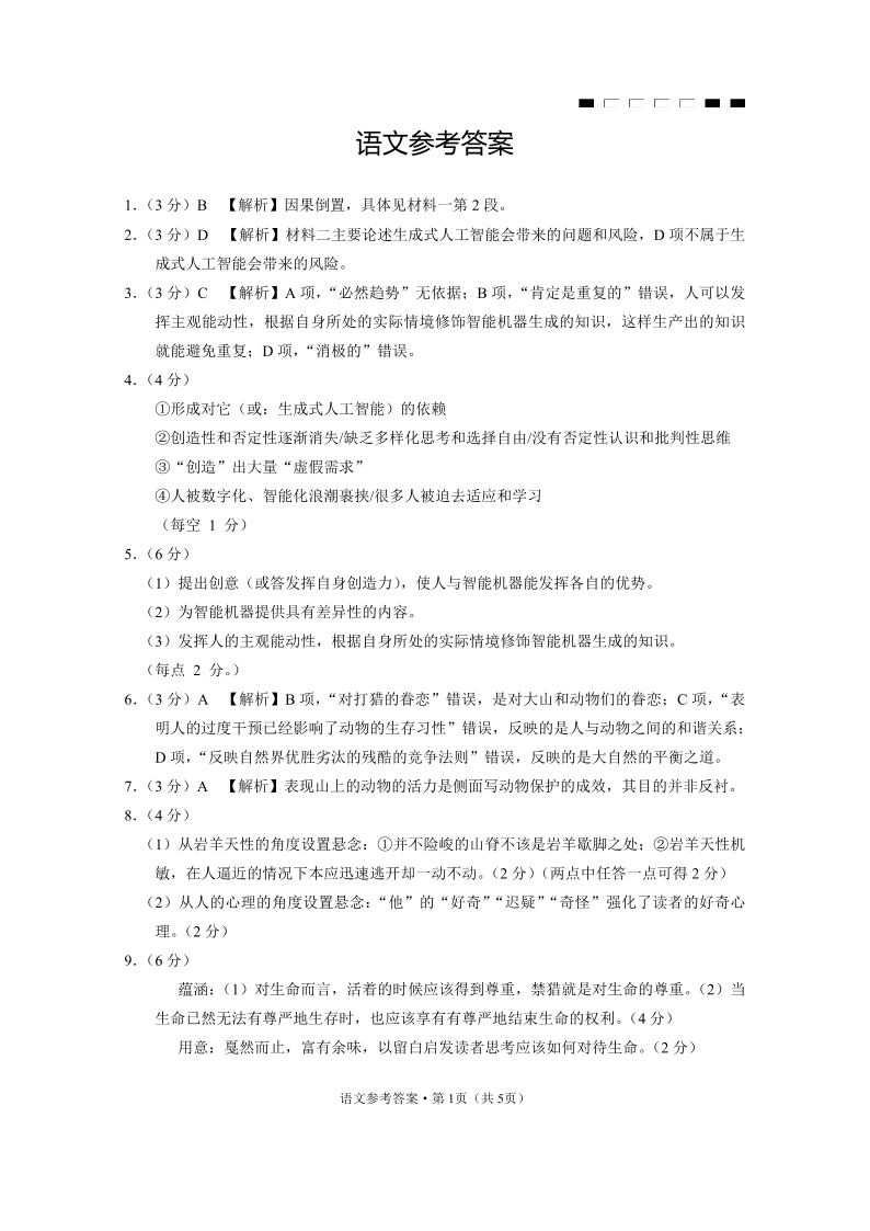 重庆市第八中学校2025届高考适应性月考卷(七)语文答案