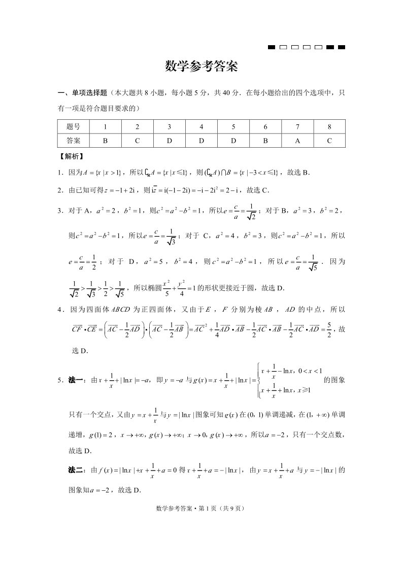 重庆市第八中学校2025届高考适应性月考卷(七)数学答案