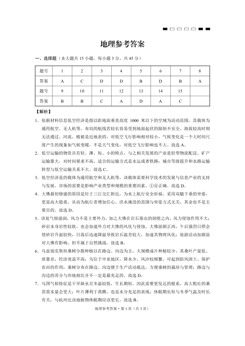 重庆市第八中学校2025届高考适应性月考卷(七)地理答案