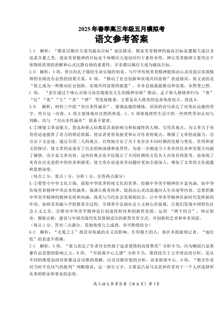 湖北省鄂东南高中学校2025年春季高三年级五月模拟考语文答案