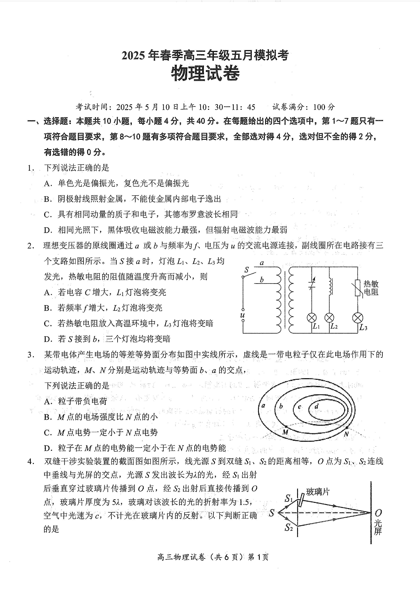 湖北省鄂东南高中学校2025年春季高三年级五月模拟考物理