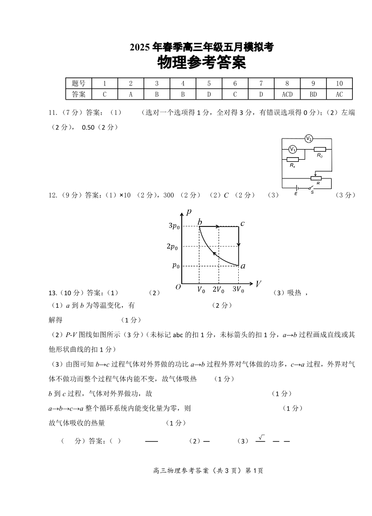 湖北省鄂东南高中学校2025年春季高三年级五月模拟考物理答案