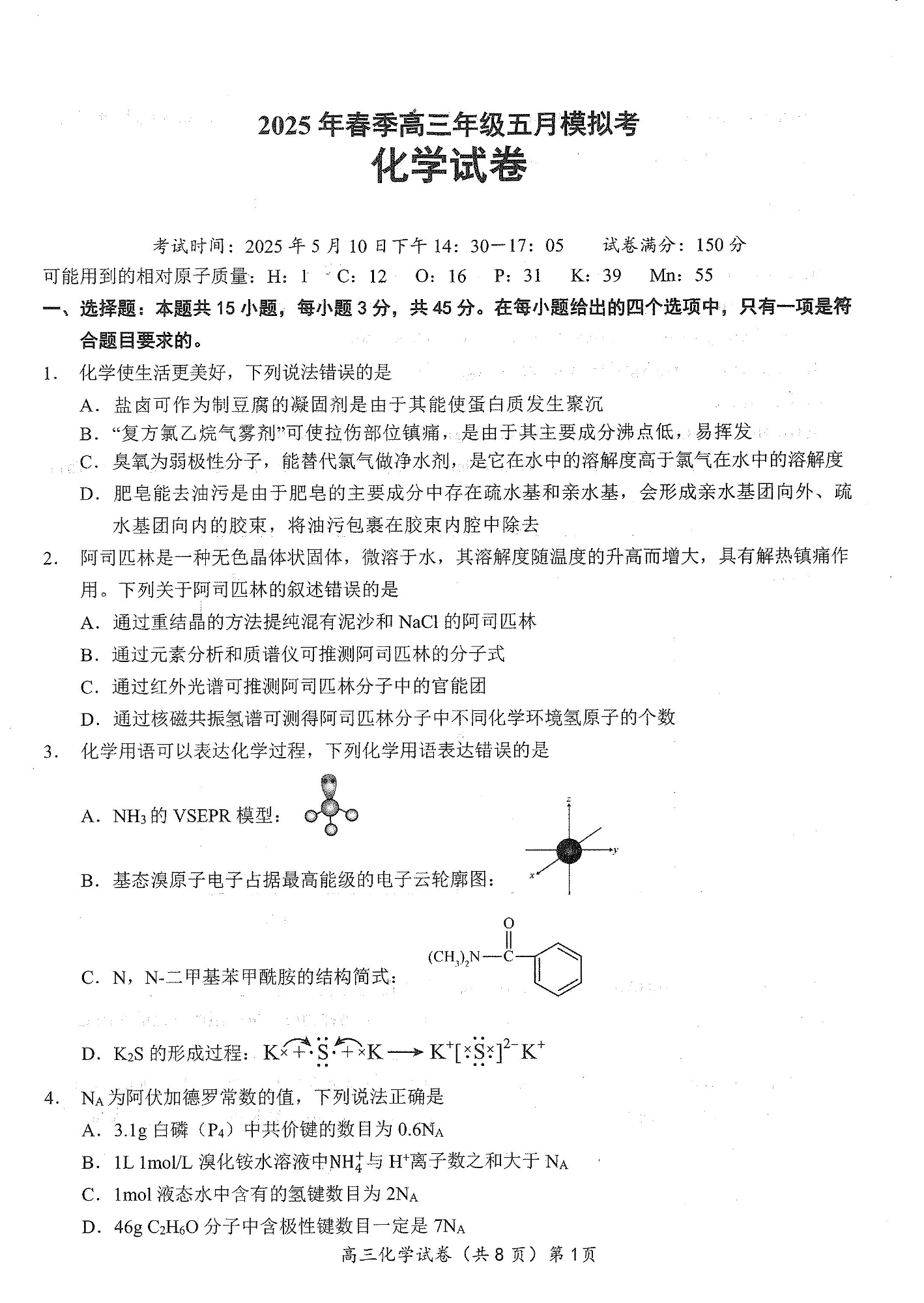 湖北省鄂东南高中学校2025年春季高三年级五月模拟考化学