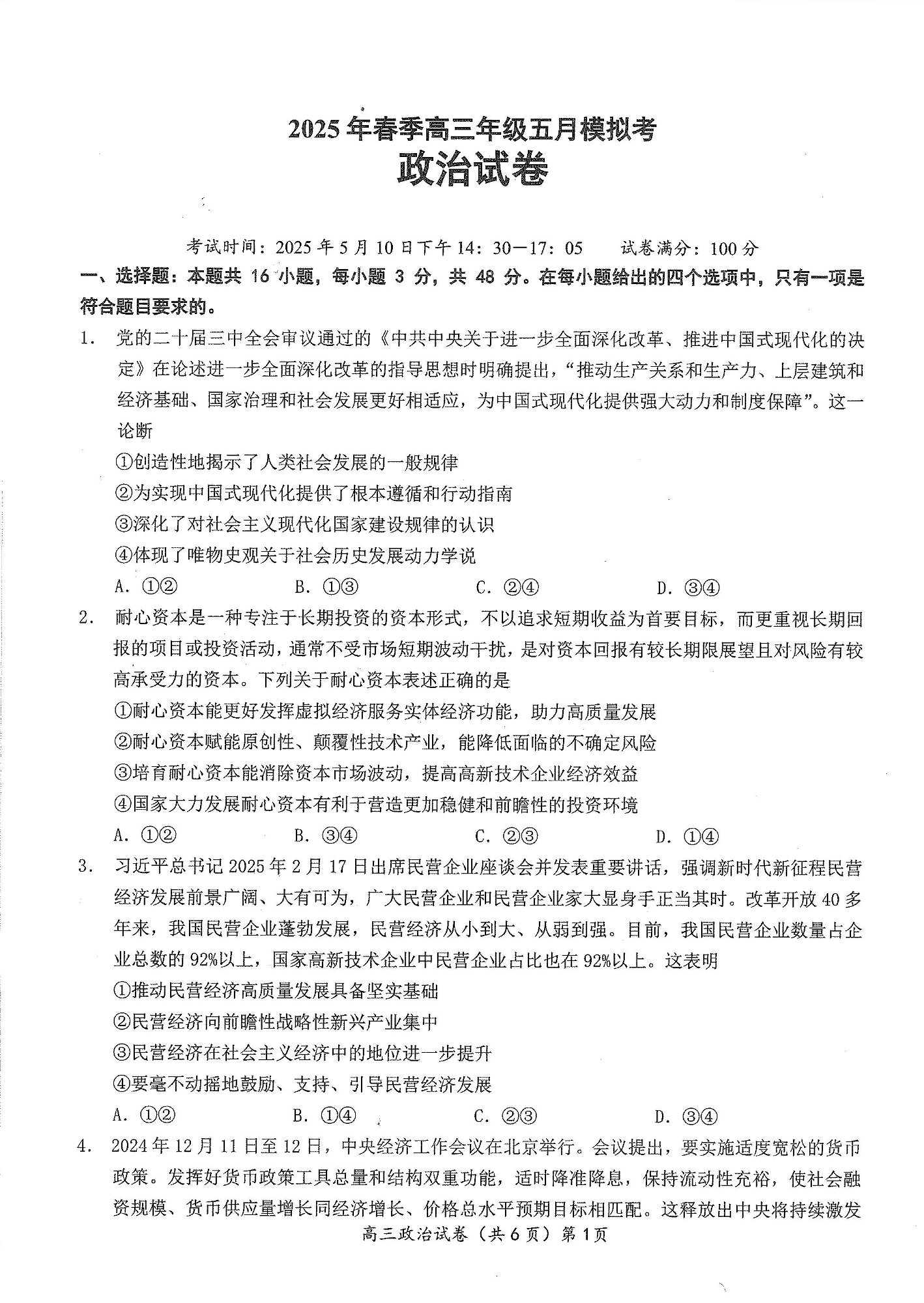 湖北省鄂东南高中学校2025年春季高三年级五月模拟考政治