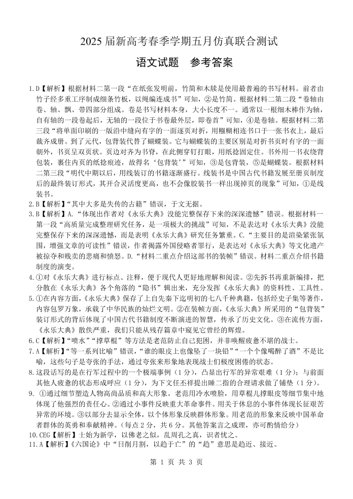 广西邕衡教育名校联盟2025届期新高考春季5月全真模拟测试语文答案