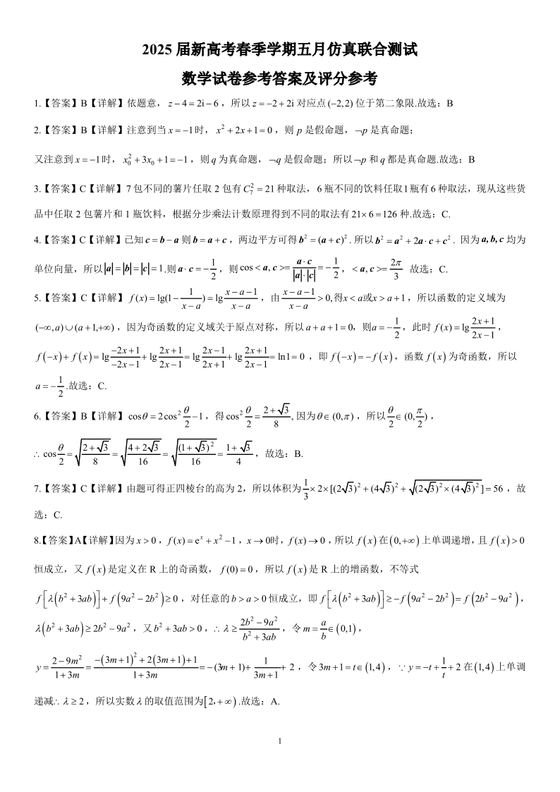 广西邕衡教育名校联盟2025届期新高考春季5月全真模拟测试数学答案