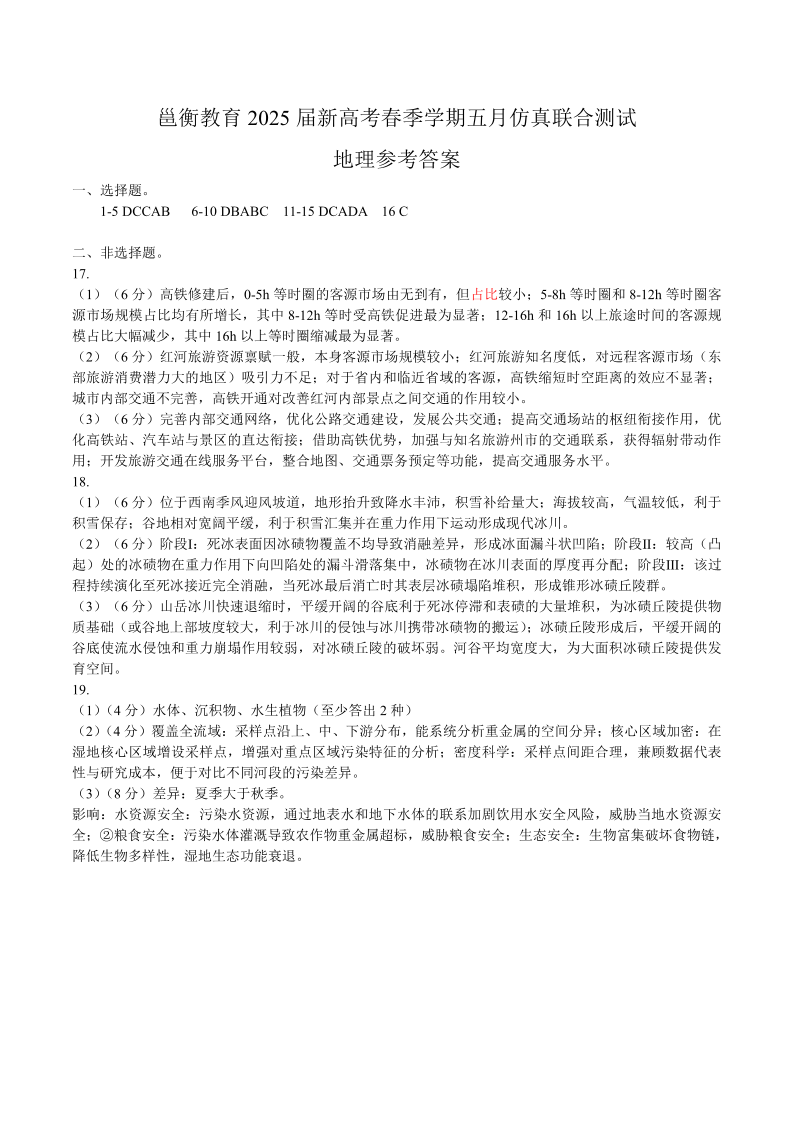 广西邕衡教育名校联盟2025届期新高考春季5月全真模拟测试地理答案