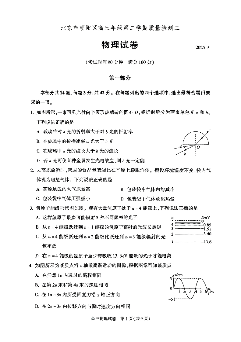 北京市朝阳区2024-2025学年第二学期高三二模质量检测物理+答案