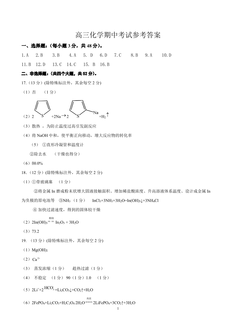山西省运城市2024届高三上学期11月期中考试化学答案