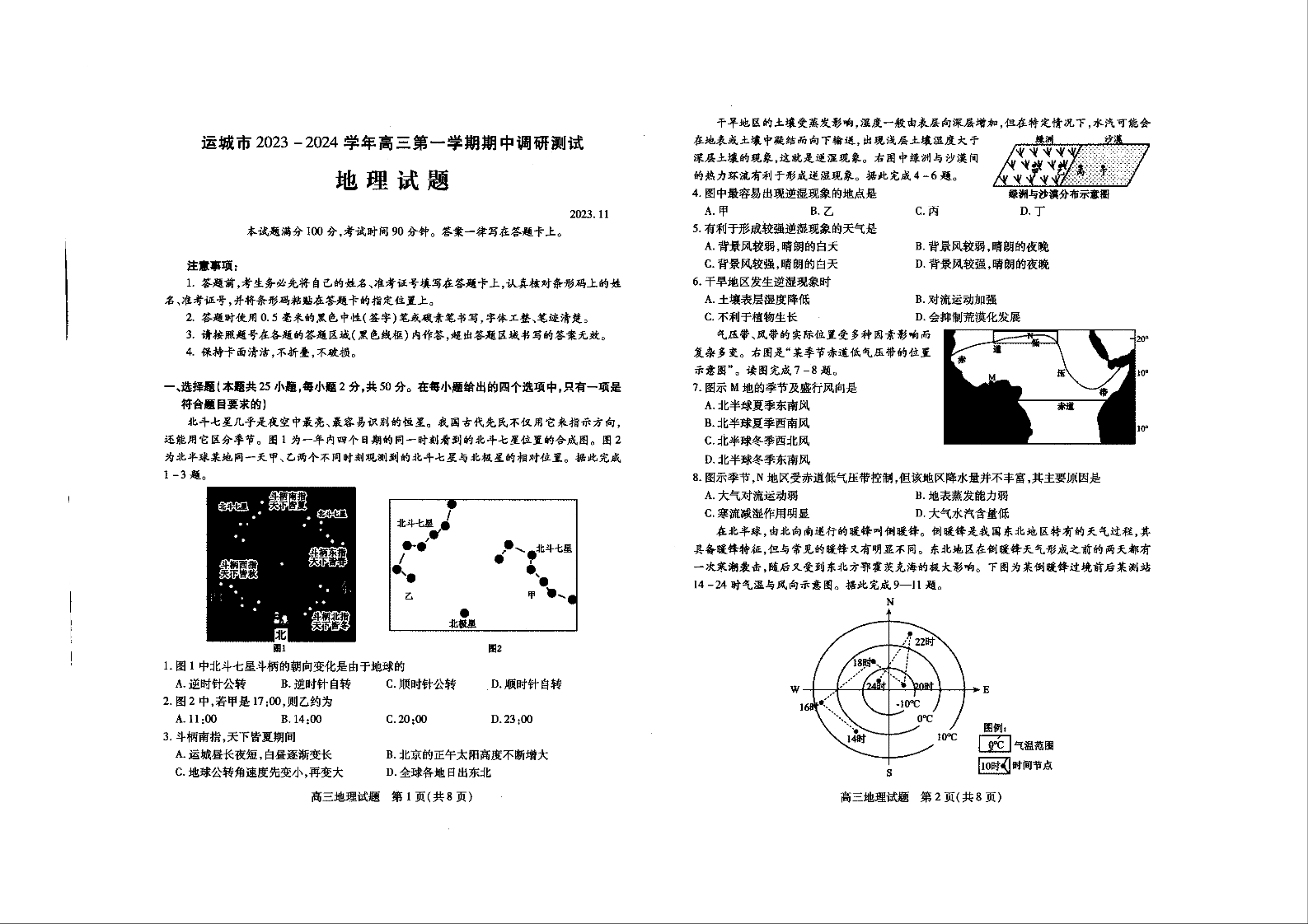 山西省运城市2024届高三上学期11月期中考试地理