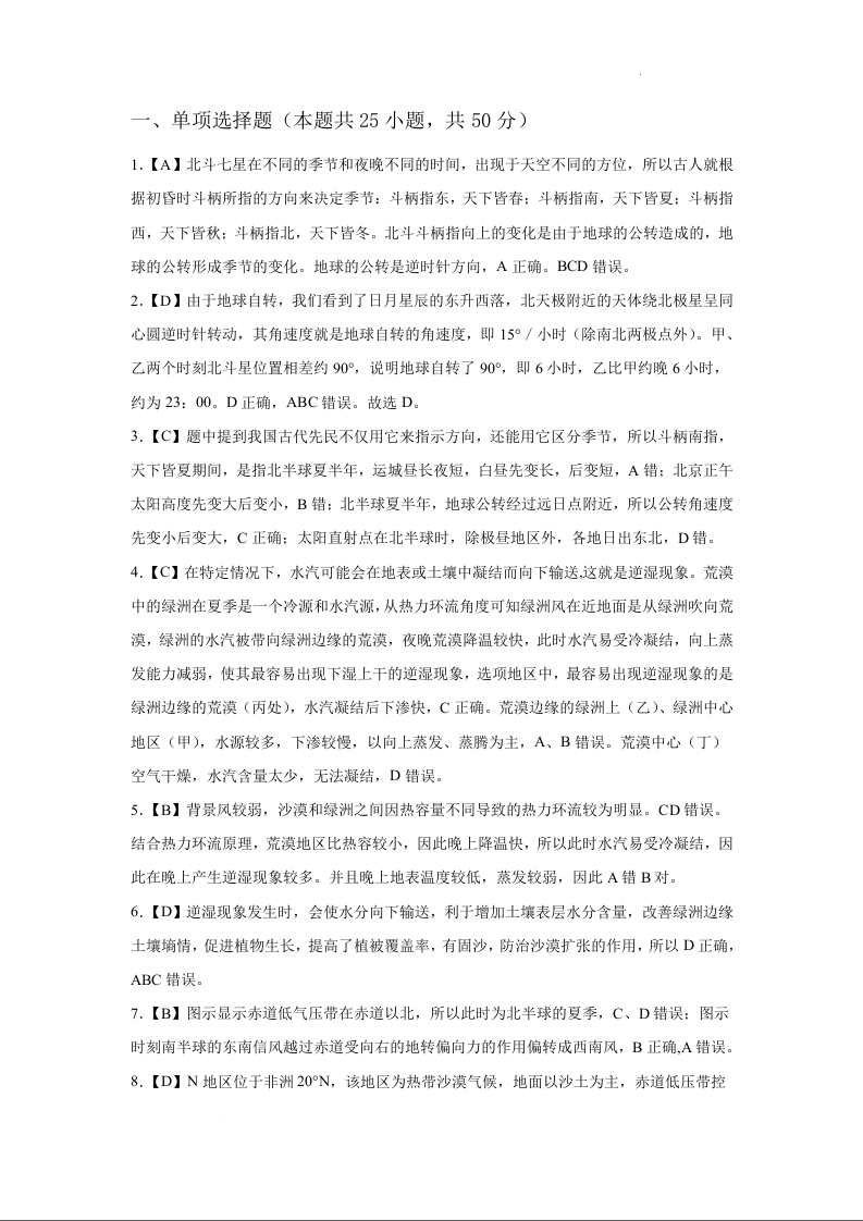 山西省运城市2024届高三上学期11月期中考试地理答案