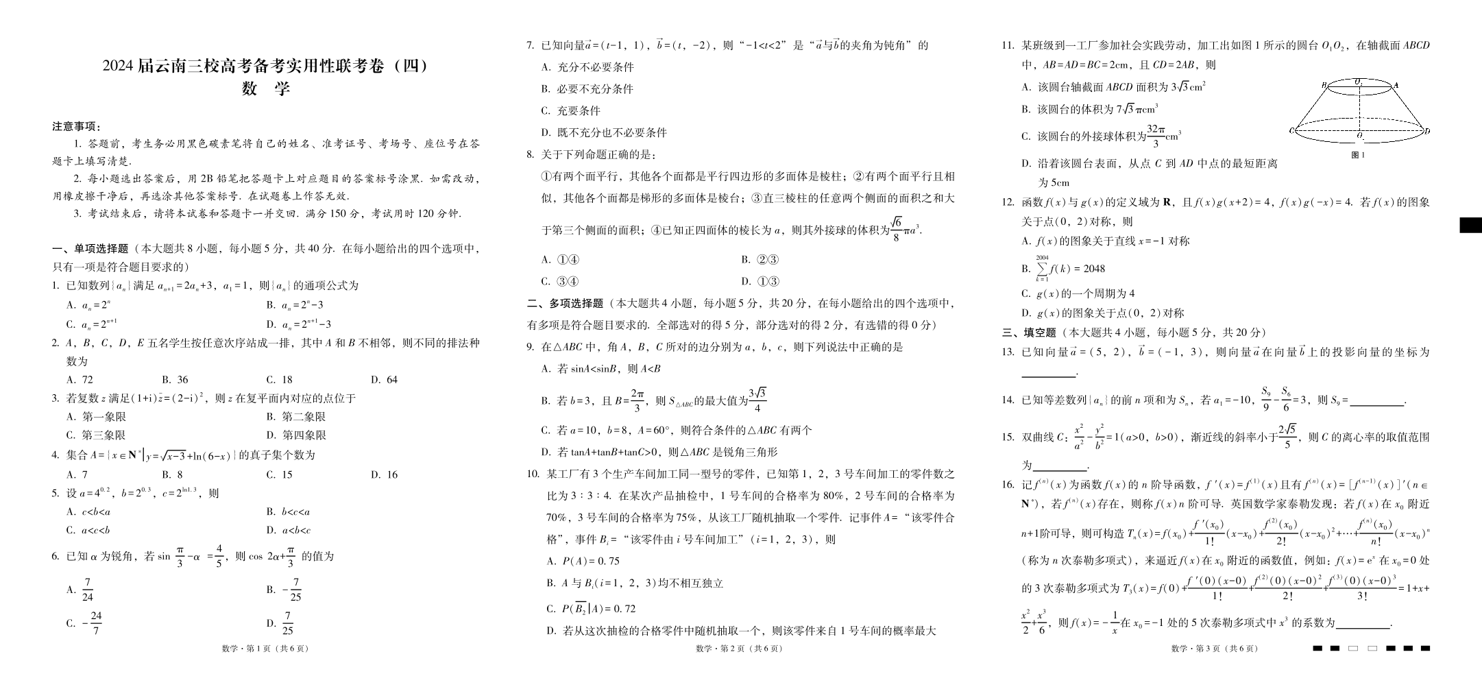云南省三校2024届高三高考备考实用性联考卷(四)数学