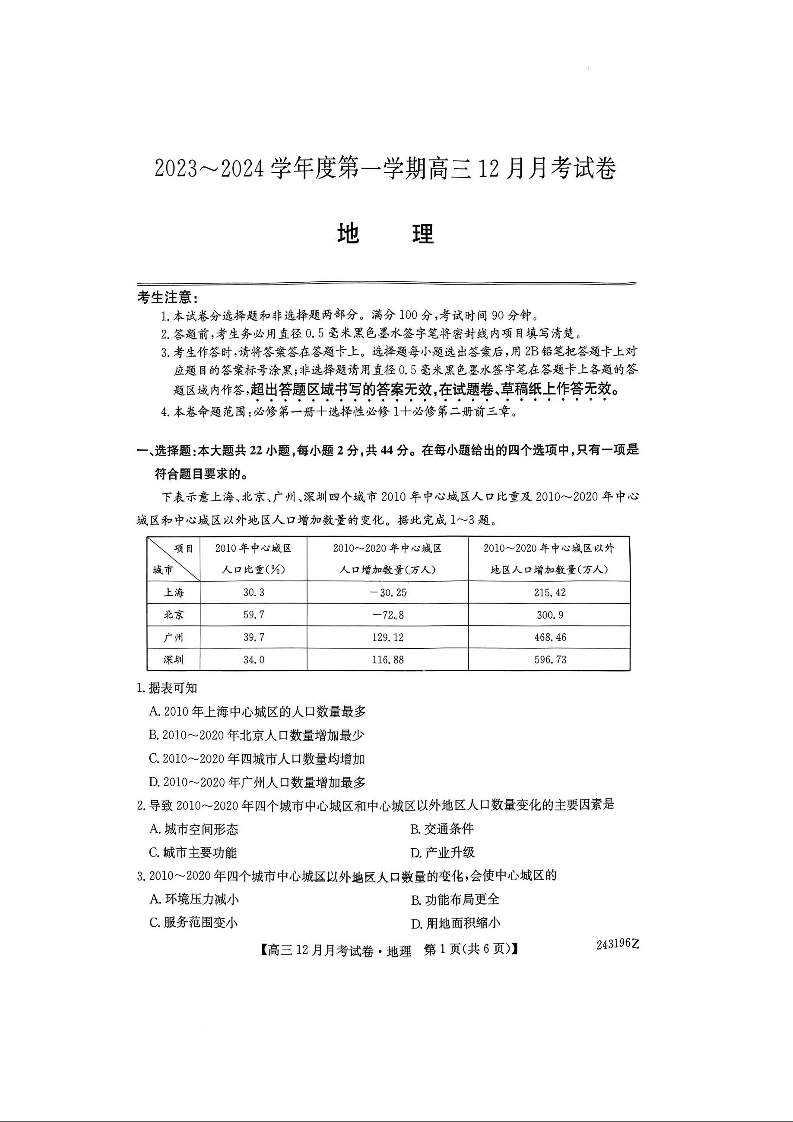 山西省吕梁市孝义市2024届高三上学期12月月考地理